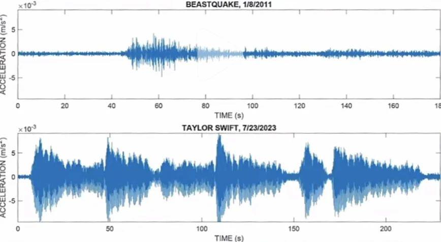 而霉霉的演唱会则是既有粉丝狂欢,狂欢到在西雅图的演唱会直接给当地带去了 2.3 级的地震。