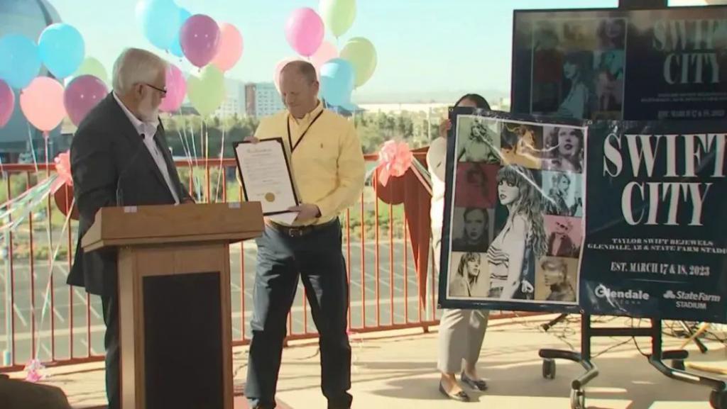 而在北美,能够得到霉霉 " 垂青 " 开演唱会的城市,市长直接在演唱会开启的时间,把城市名字从亚利桑那州格伦代尔市改成了 "Swift City"。