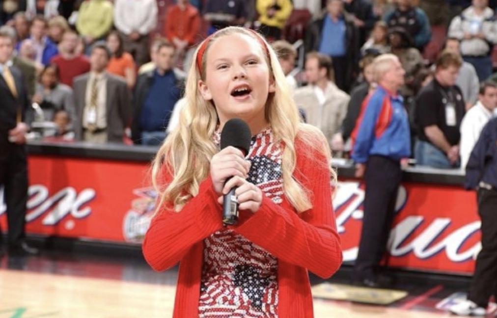而霉霉,在 10 岁的时候就站在 NBA 球队前唱国歌,