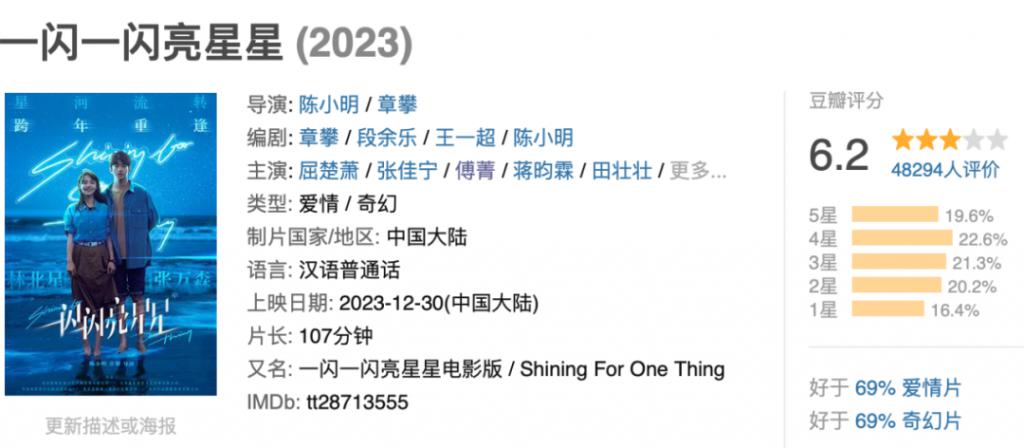 根据猫眼和淘票票显示,截止到 2023 年 12 月 16 日,《一闪一闪亮星星》退票人次已超过 100 万,两平台平均退票率达到 18.1%(常规退票率在 2%-8% 之间)。
