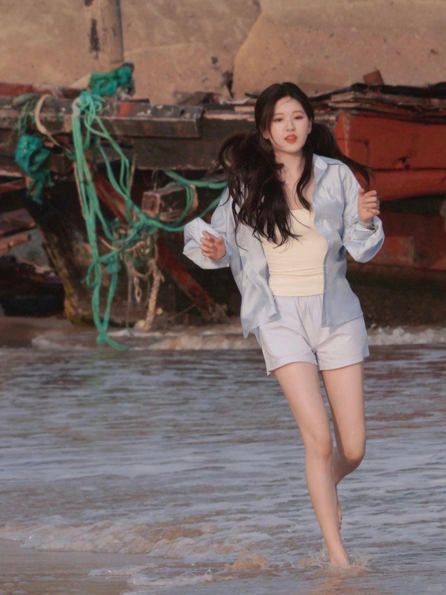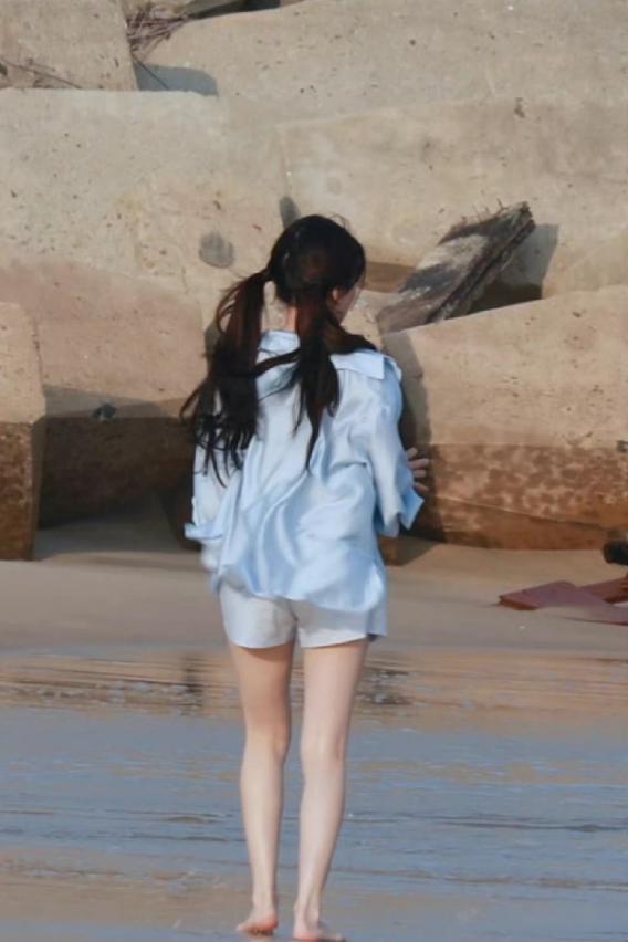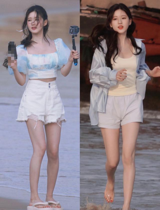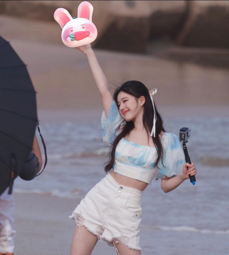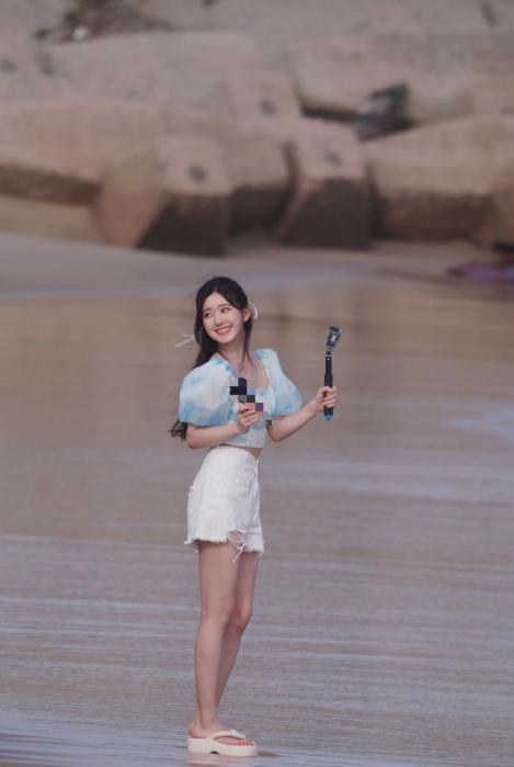 赵露思三亚拍摄路透 两组造型演绎不同风格