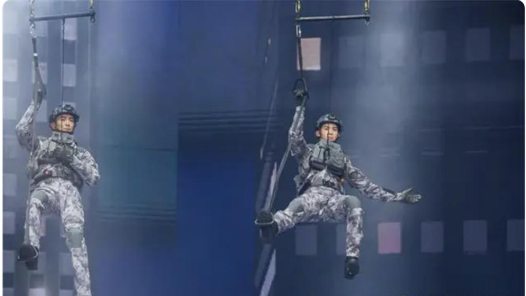 跨年晚会上,节目组还特意给他安排了节目,出场的时候,都是吊着威亚出来的。