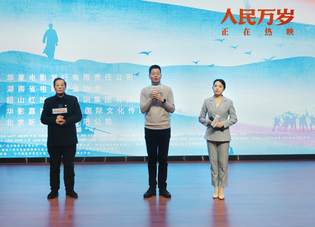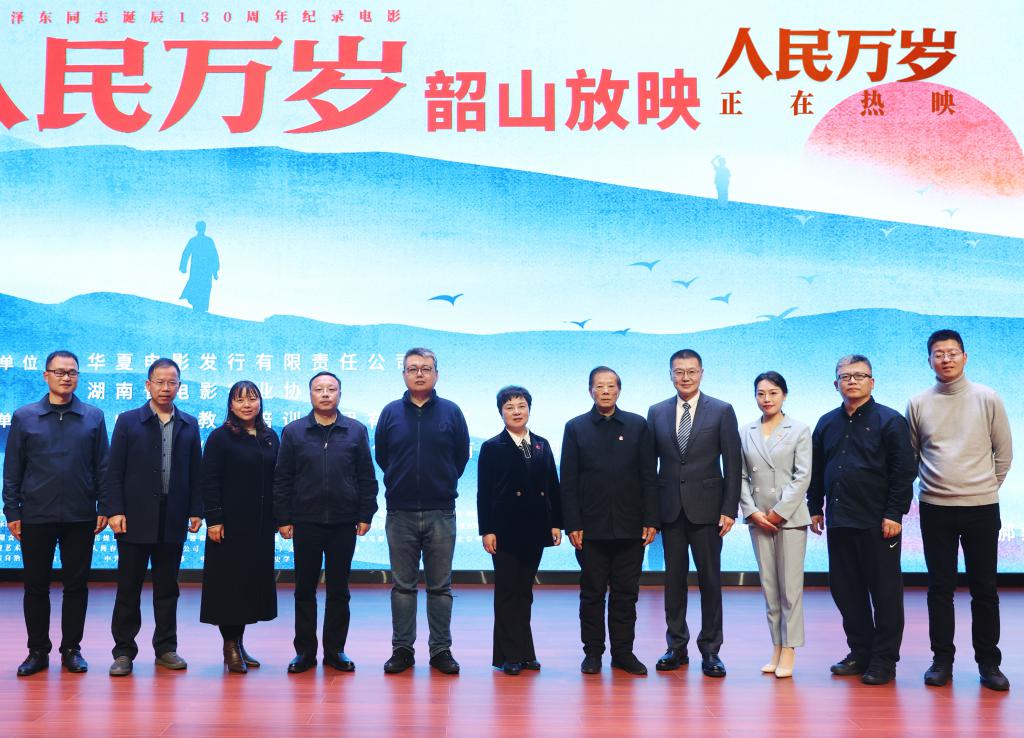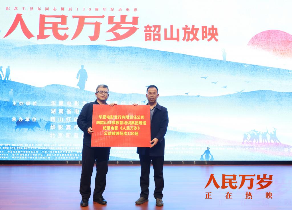 1 月 5 日,由华夏电影发行有限责任公司、湖南省电影行业协会联合主办,韶山红旅教育培训集团有限公司、华影嘉视 ( 北京 ) 国际文化传媒有限公司、北京新玺影业有限公司承办的纪录电影《人民万岁》韶山放映活动在韶山红色教育培训基地隆重举行。现场,韶山市道德模范、身边好人、文明家庭、优秀志愿者代表,学生代表,党员干部群众代表,以及各界领导和嘉宾,有关媒体记者等约 400 余人参加。活动现场气氛热烈,来宾们分享了电影幕后的创作历程以及毛泽东同志在生活中的真实故事,观众也难掩激动之情,纷纷表示应该倍加珍惜今天来之不易的幸福生活,为实现中华民族伟大复兴的中国梦而努力奋斗!