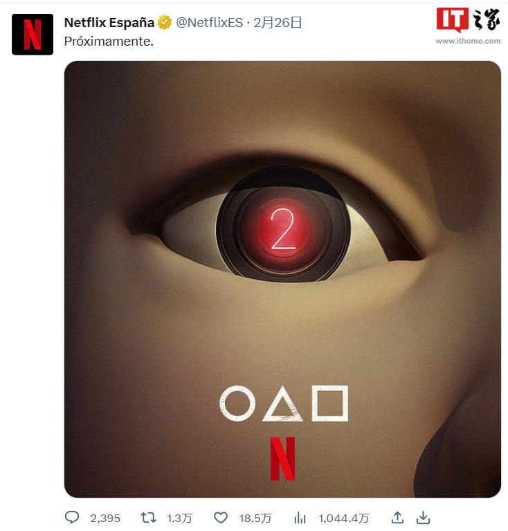 Netflix 西班牙官推发布了《鱿鱼游戏》第二季的首张海报,并宣布“Próximamente(很快)”,但没有公布具体时间。