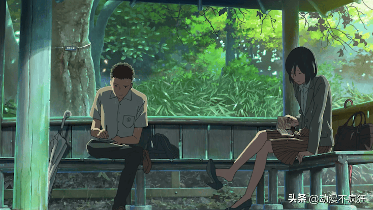 第五 《言叶之庭》,这部电影于2013年在日本上映,故事发生在现代东京,讲述了以制鞋人为目标的少年秋月,和神秘女子雪野的恋爱故事,故事源于万叶集开篇的,“孤悲”之恋,作品中透露出鞋,万叶集,日本庭园,雨等因素,上映后不久便获得了,斯图加特国际动画电影节,长篇部门最优秀奖,作为新海诚壁纸狂魔巅峰作品,随手一截就是美到爆炸的壁纸