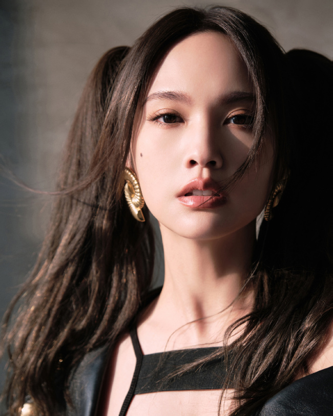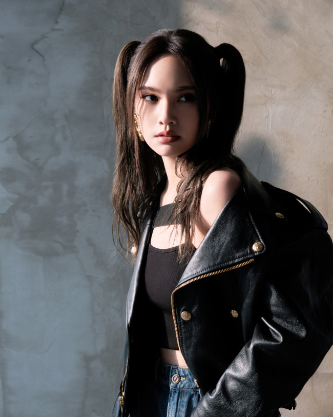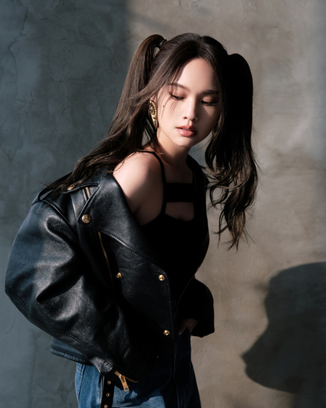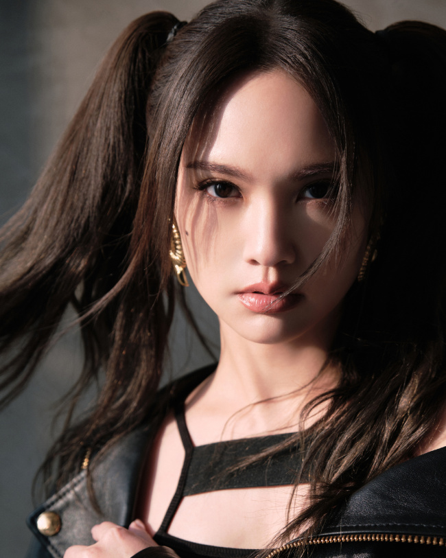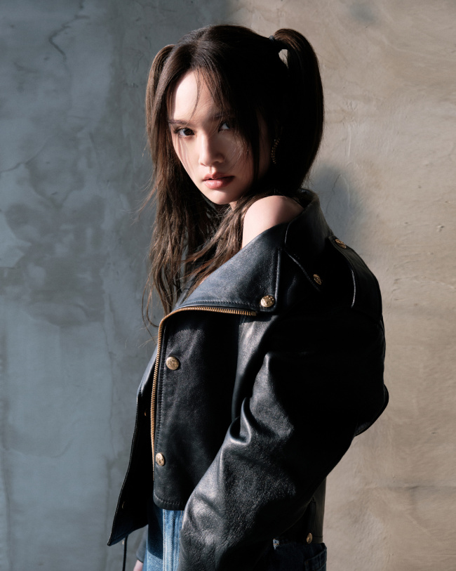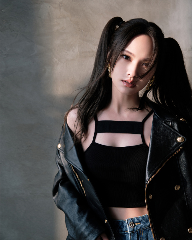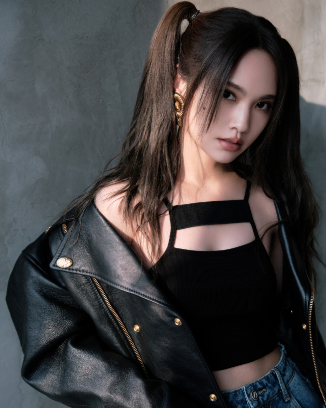 杨丞琳扎双马尾穿皮衣 造型又甜又酷