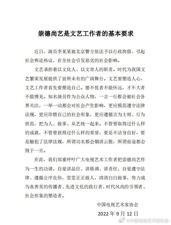 原标题:中国视协评李易峰事件:崇德尚艺是基本要求