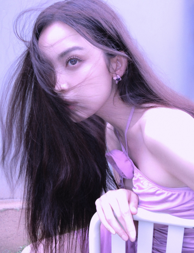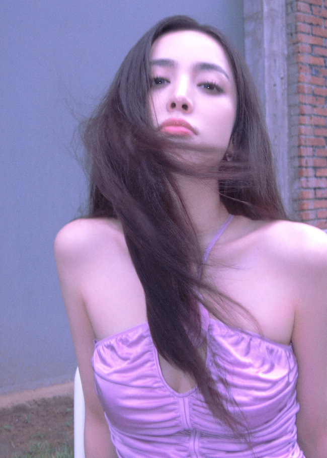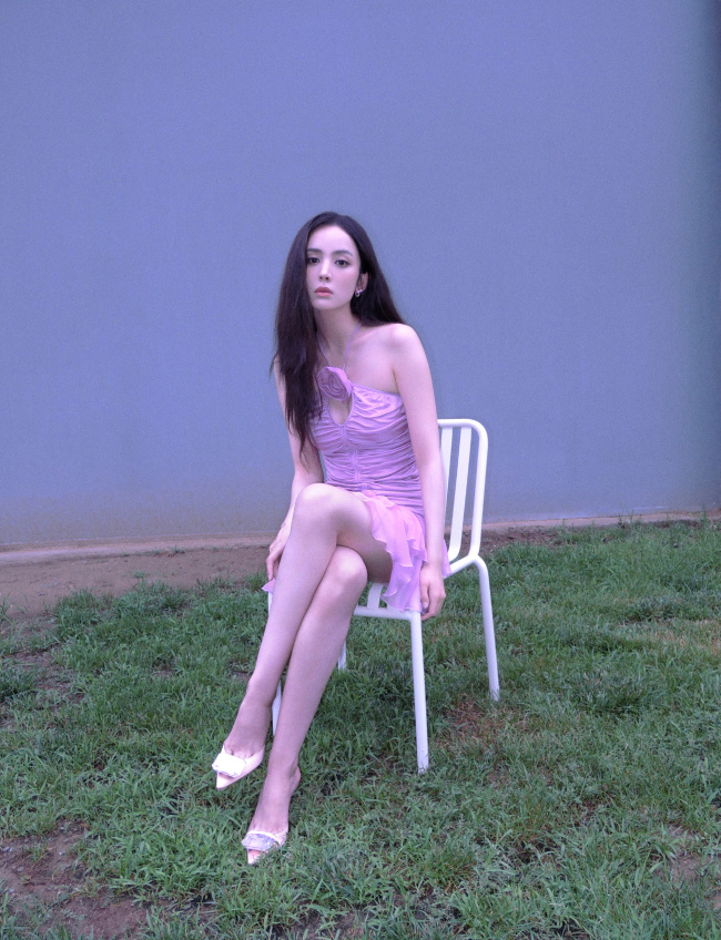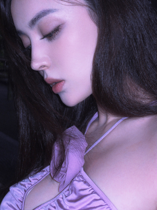 娜扎穿紫裙露美背 昏暗光影下氛围感满分