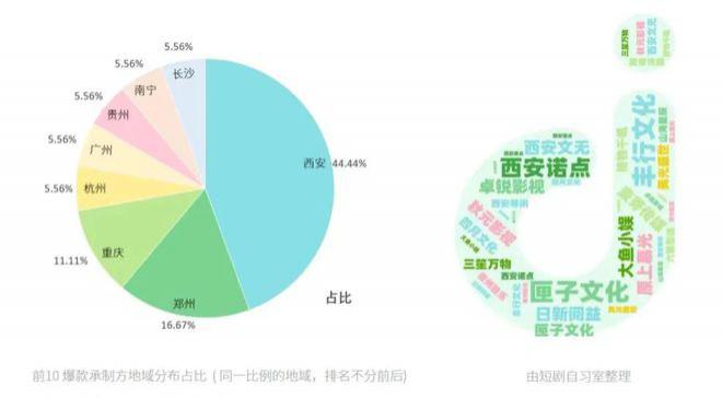 2023 年 12 月,公众号 " 短剧自习室 " 盘点了从 2022 年 9 月 18 日到 2023 年 11 月 12 日近 14 个月的历史爆款榜单,发现来自西安的承制方有 24 家,来自浙江东阳(横店)的有 20 家。
