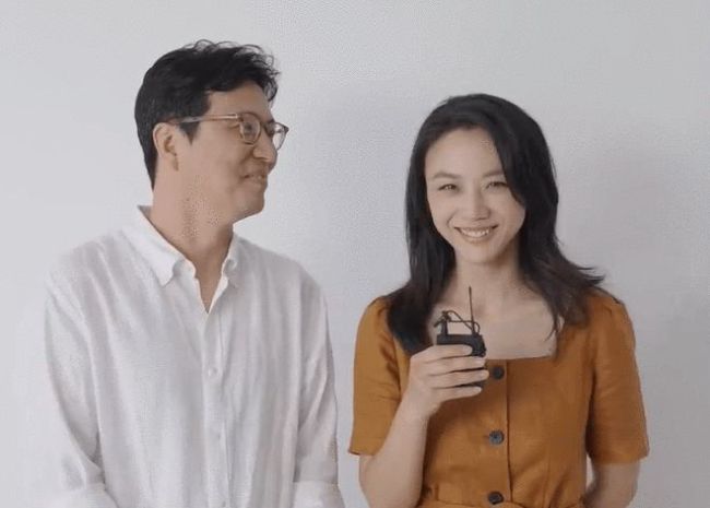 视频中,汤唯一身姜黄色服装,披散长发显温柔,其老公金泰勇则一身白色衬衫戴着框架眼镜,两个人在镜头前对视时笑容灿烂,对方发言时都会温柔注视,难掩甜蜜之情。