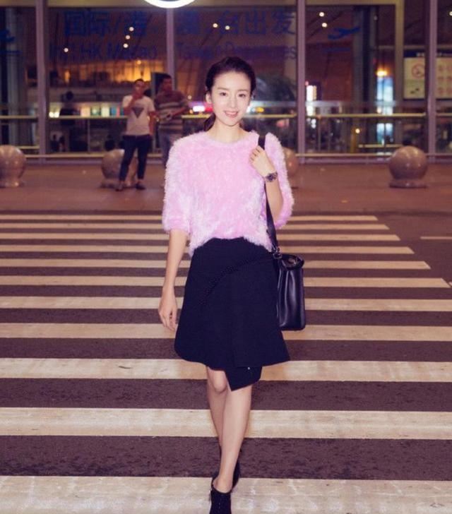 哇!董洁太美了,黑色不规则裙搭配海马粉色毛衣,时尚减龄,当年的冷清秋又回来了!