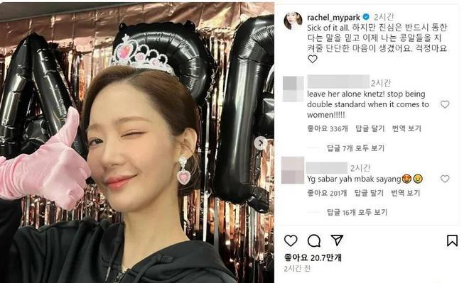朴敏英本人也在社交平台上发声表达不满:"sick of it all.(受够一切了)"。然而,在表明个人立场后,韩媒并未停止对她的质疑,韩媒指出姜钟贤曾将约 2 亿 5 千万韩元(折合人民币 135 万元)汇入朴敏英的账户。