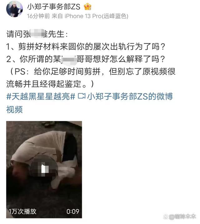 而郑爽正是视频的拍摄者,她在视频里也出声了,面对张恒的出轨,她说从对方身上只看到 " 不珍惜 " 三个字,张恒跪地求饶让她不要再说,并连连否认自己并没有,还低声下气地跟郑爽道歉:我错了。这场面跟张恒放出的 " 郑爽精神错乱 " 的狼狈音频差不多,也与他日常展现出来撕郑爽的精明样子判若两人。