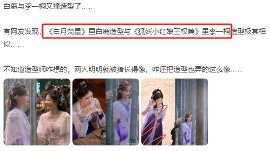 看李一桐和白鹿的造型,不能说很像,简直一模一样。