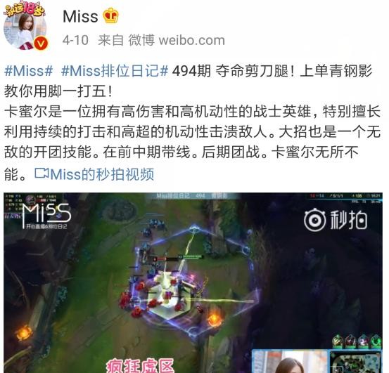 除了斗鱼,与其同期出名的直播平台还有虎牙直播。虎牙直播“当家一姐”miss相信也是被很多网友熟识的,不过相比较之下,miss目前也还只是专职做直播工作、录制自己工作室的游戏教学节目《Miss排位日记》,这档节目已经持续了很长一段时间,然而到目前为止,也不见虎牙给其当家主播提供更好的新资源去发展。