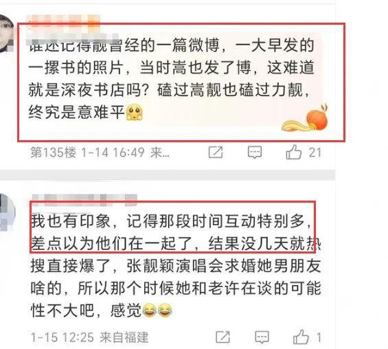 2014 年至 2015 年期间,张靓颖和许嵩不仅线上互动非常频繁;