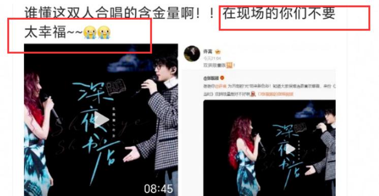 甚至在演唱《如果当时》的时候,许嵩听到张靓颖声音掩饰不住的笑意,看上去非常开心的样子。