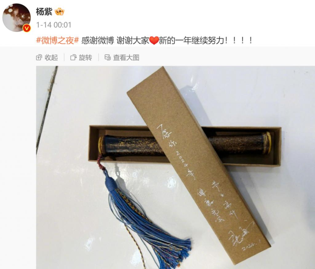 这份礼物恰好由名字中带 " 紫 " 的杨紫抽到了。