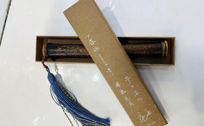 因为他的礼物,是他在江苏的周庄亲自挑选,手工制作的一个紫竹把件,寓意紫气东来,节节高升。