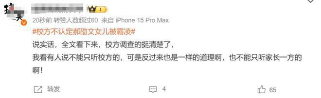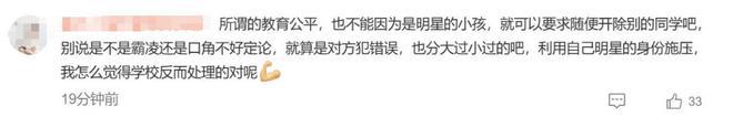 不少网友看到官方通报的结论,纷纷认为郝劭文一家的控诉欠缺实际证据,还疑似有引导网暴未成年的嫌疑,认为其利用明星影响力胁迫校方开除学生的行为,才是彻底的舆论霸凌。