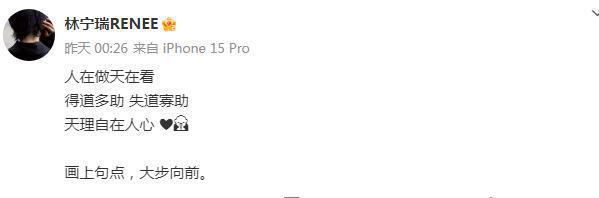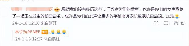 在官方通报发布前一天,郝劭文妻子发文疑似暗示孩子被霸凌事件有了结果,她表示:人在做天在看,得道多助失道寡助,天理自在人心,画上句点,大步向前。看到评论区的安慰和鼓励,她也回复了抱抱的表情包。