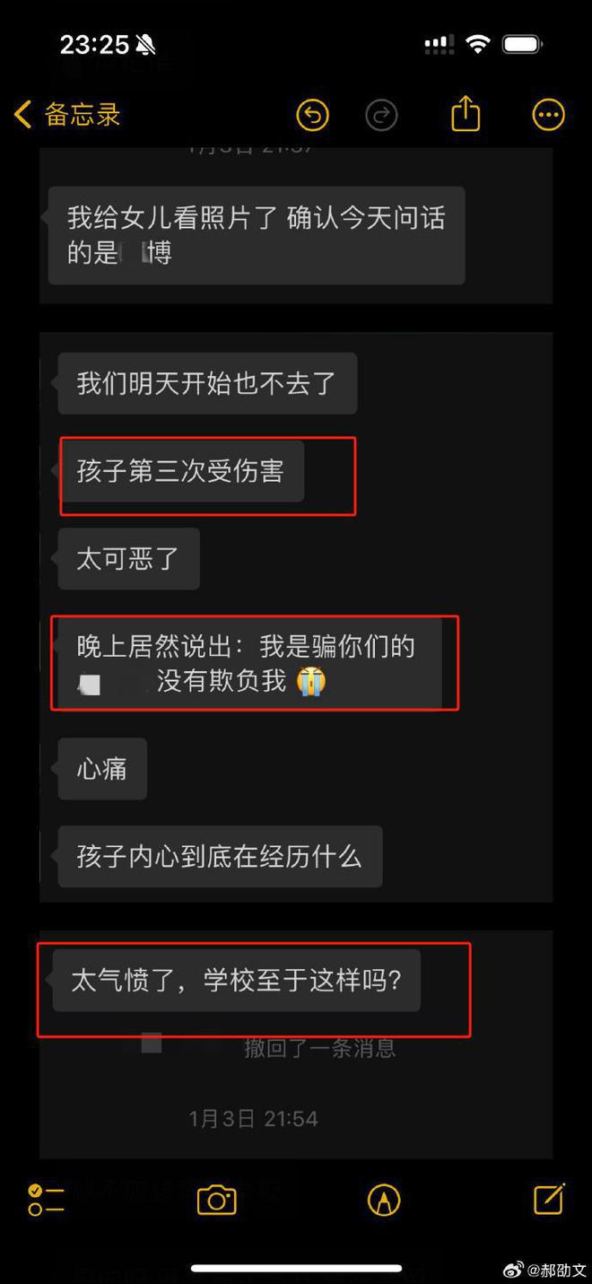 根据郝劭文晒出的截图来看,他发布了这大半个月处理事件的进程,从中可以获取不少信息。首先,郝劭文夫妇已经决定帮女儿转校,其二被霸凌的受害者不止郝劭文女儿,还有其余四位受害者。