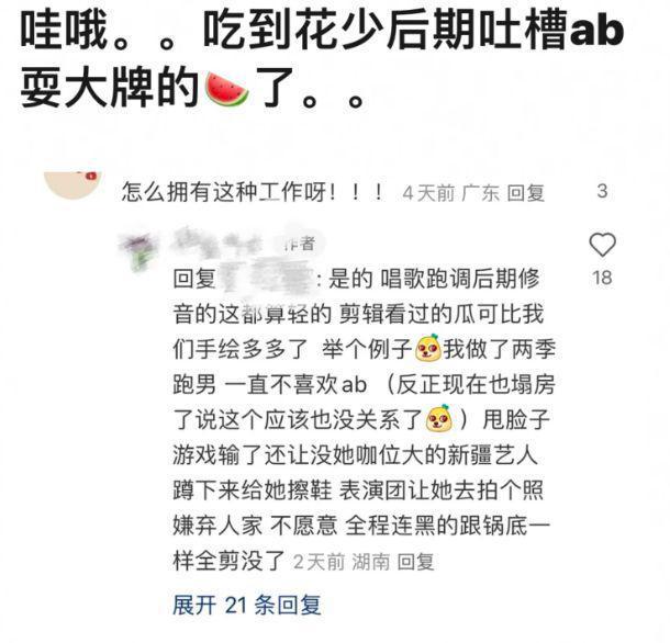 近日,一位自称是热门综艺节目《花少》后期工作人员在社交媒体上发文痛斥女星杨颖(Angelababy)工作态度问题。该工作人员表示,在参与节目制作过程中,杨颖不仅出现唱歌跑调需后期大量修音的情况,还涉及更多不为人知的争议行为。