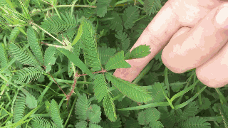 相信很多小伙伴在童年时印象最深刻的会“互动”的植物就是含羞草了,因为每次用手轻轻碰一下它们,其叶子就会迅速闭合,如果你稍微用了大一点儿的力,它连枝带叶都会下垂。据研究,含羞草在受到刺激后0.08秒钟内,叶子就会合拢,而且受到的刺激还能传导到别处,传导的速度最快每秒钟达10厘米。