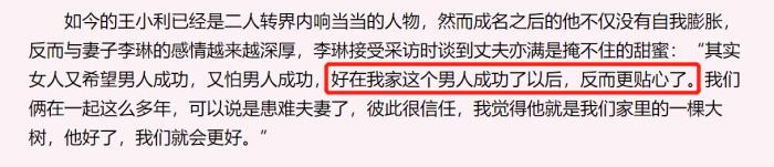 结婚20年,王小利和李琳在名利双收之时,两人的感情反而有增无减,这份同甘共苦的夫妻情分实属难得,而李琳对前妻儿子视如己出,这样的胸襟也的确令人佩服。