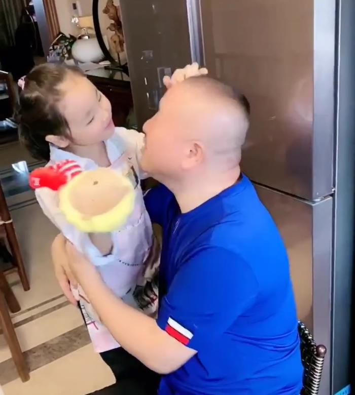 9月22日,王小利女儿仿照网上的段子演示对待爸爸不同时间回家的态度,逗得王小利开怀大笑,他还急忙向女儿保证自己不超过九点就会回家,可谓十足的女儿奴。