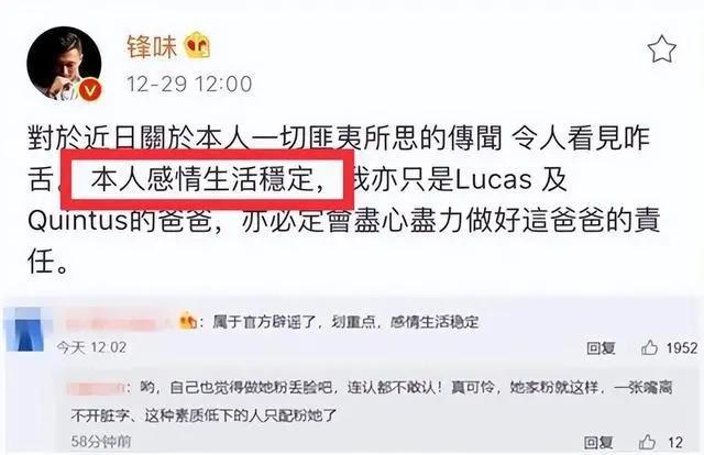 甚至还有网友将孩子的生父对准了谢霆锋,不过很快就被他否认了。
