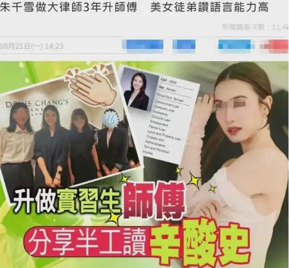 2016 年开始,出身富裕的学霸朱千雪就攻读了法律博士课程,2020 年正式加入某著名律师行并很快成为执业律师。