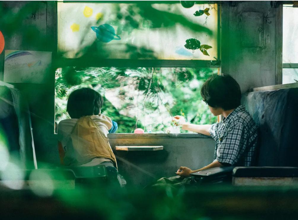 是灵魂互动,惺惺相惜的两个孩子啊,在 " 怪物 " 横生的环境里,他们在山间的废弃车厢里,天真烂漫,幻想未来。