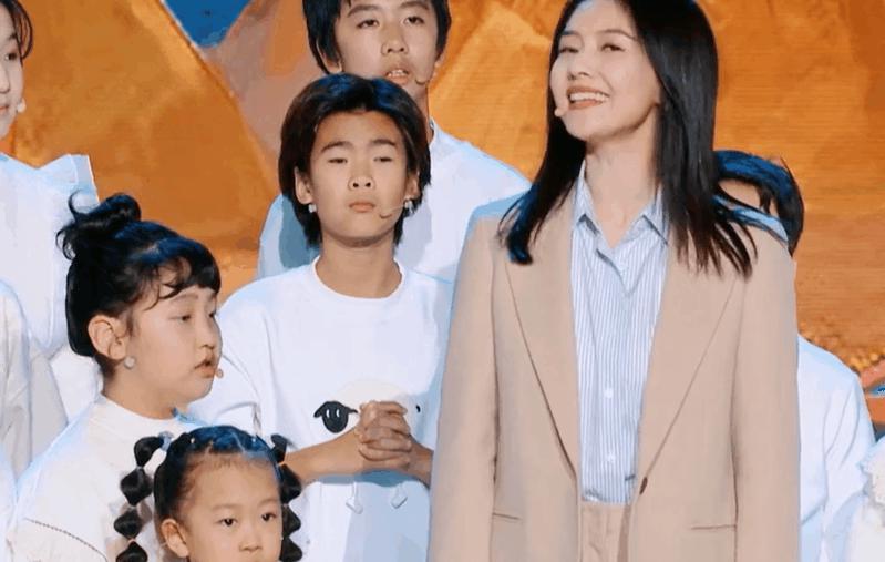 舞台上的她穿着朴素简约,还被一群孩子围着,有一种属于老师的优雅与知性之美。