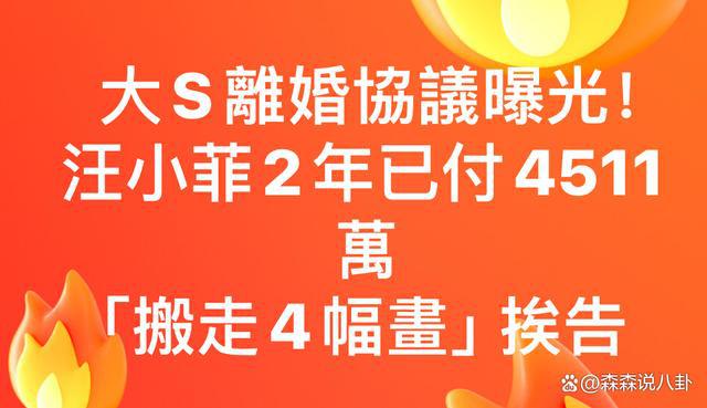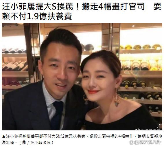 不过,大 S 再婚后起诉汪小菲违反协议没有继续打钱,要求法院执行其名下 750 万台币的财产,近日又控诉汪小菲从家中搬走 4 幅名画,要求法院执行 2217 万台币。