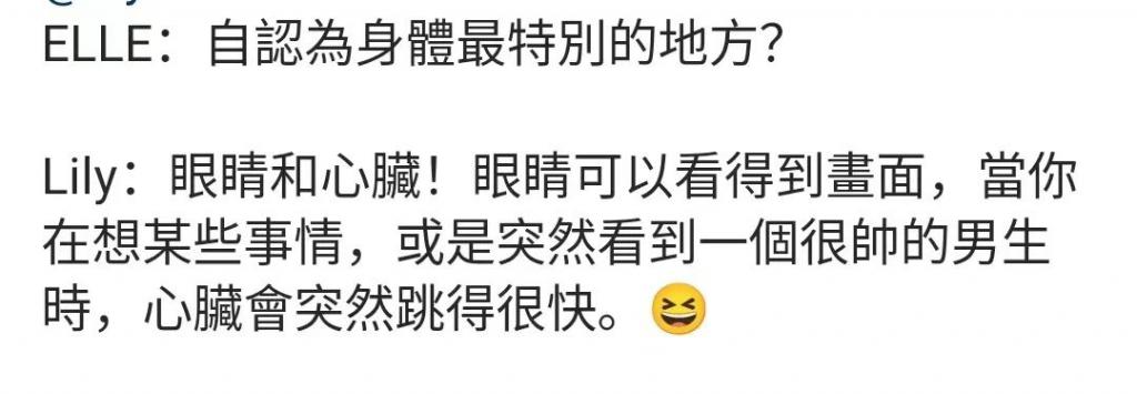 显然,Lily 已经得到了小 S 的真传,可以熟练地组织语言,表达一些可以令人产生浮想的综艺语言。