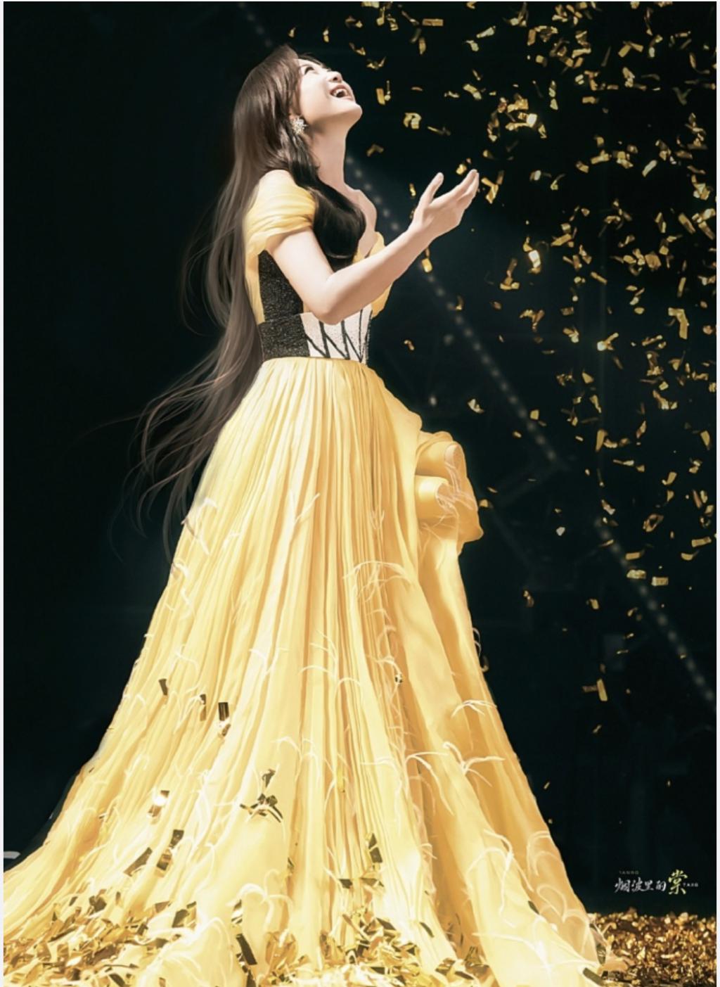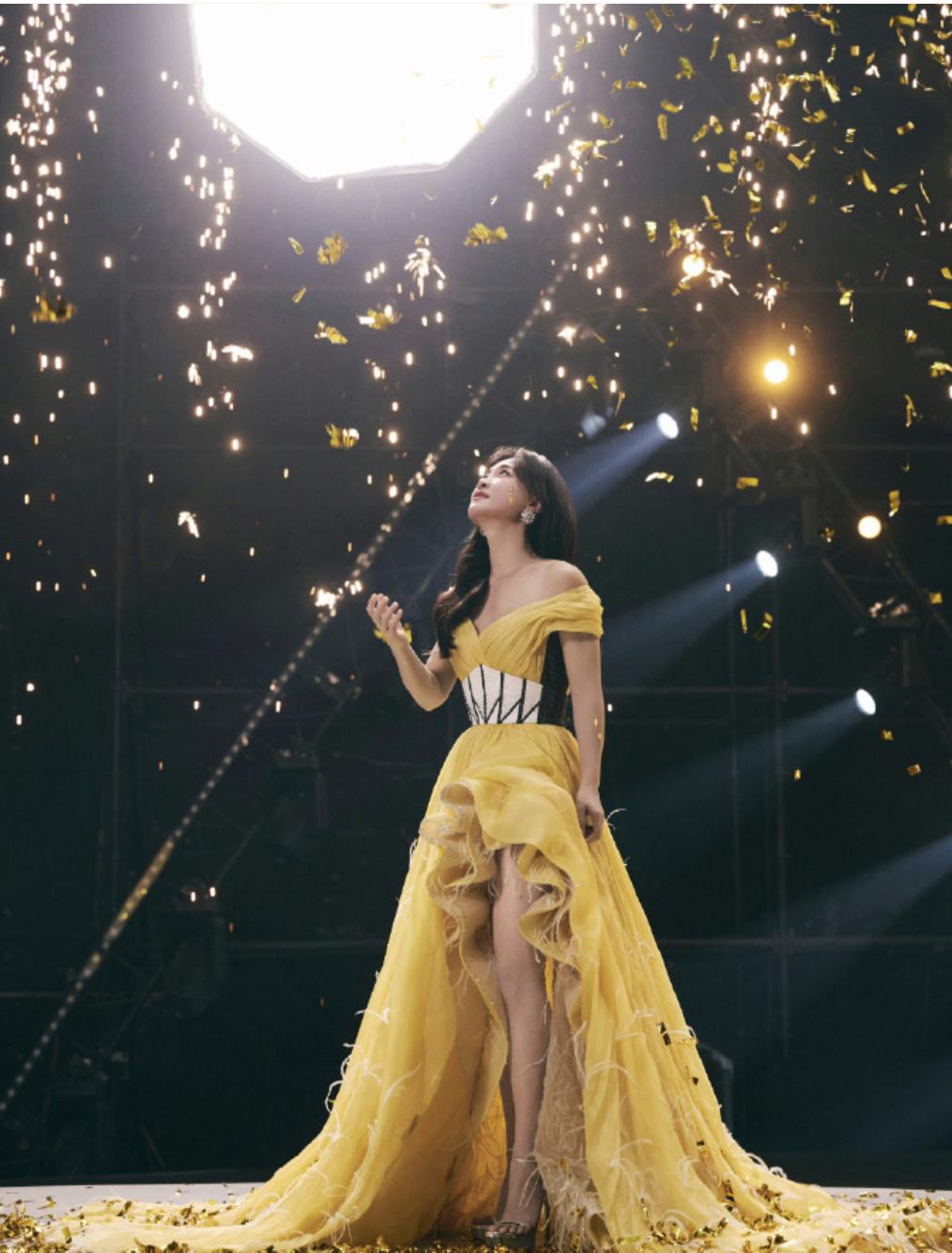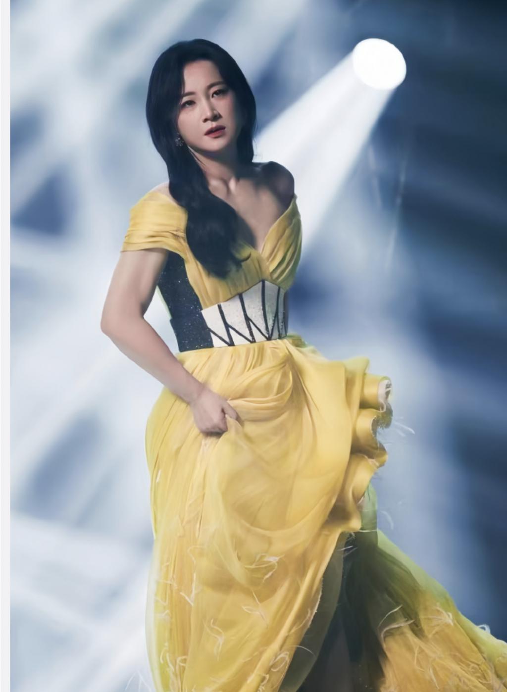 贾玲都穿上了黄色低胸晚礼服了。