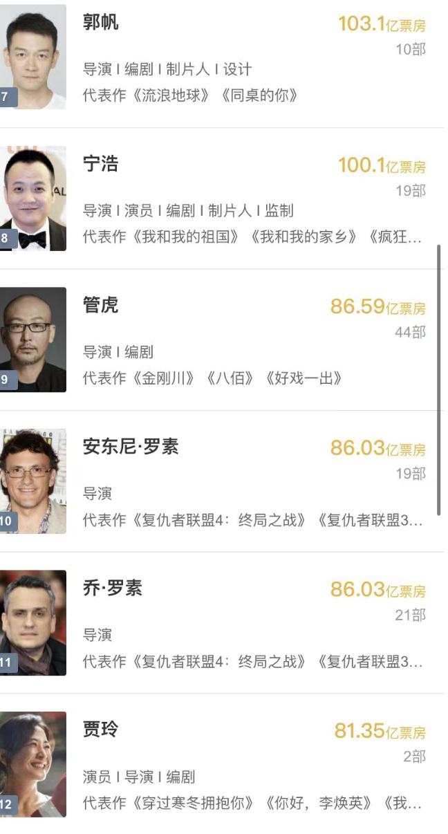如今,两部作品大获全胜,贾玲要轻松冲到前十名了。