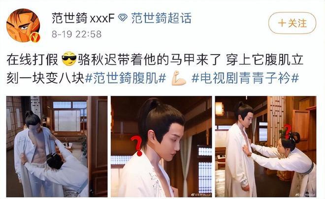 范世琦居然还在线打假,自己在社交平台放出假腹肌的照片,直言:" 穿上它腹肌立刻一块变八块 "。