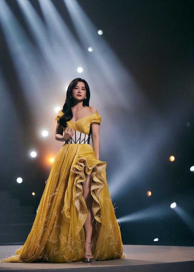 更震撼的是瘦下来的贾玲留着大波浪,穿着晚礼服,裙摆开叉出露出修长笔直的双腿,整体气质和形象居然不输给内娱的女星。