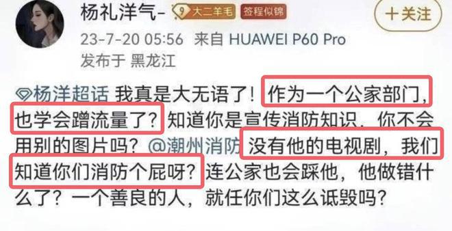 或许观众的吐槽,对于杨洋来说不痛不痒,但是官方下场点名批评了,就显得事情性质完全不同了。不过让人觉得惊讶的是,在官方出来吐槽后,居然引得很多杨洋粉丝集体吐槽,更有些不理智的粉丝直言官方在蹭他们哥哥的流量,更是表示 " 如果没有这个剧,鬼才知道你们消防是什么 "。不得不说,这些粉丝追星追得脑子都没有了。