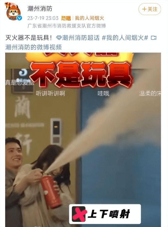 可以说,自从《我的人间烟火》播出后,男主杨洋不但没有吃到红利,而且男顶流的位置也将不保了。他在该剧中秉承着偶像剧中的耍帅和霸总的形象,对消防员的形象没有正面的诠释。更是直接引得官方直接点名批评,表示灭火器不是玩具,更是晒出了杨洋和女主王楚然在剧中拿灭火器秀恩爱的片段。