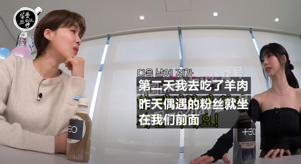 而第二天 KARINA 去吃饭时又遇到那两个粉丝,就坐在 KARINA 的前面,所以 KARINA 就为粉丝买单,请她们吃了饭。