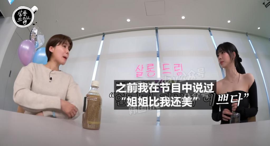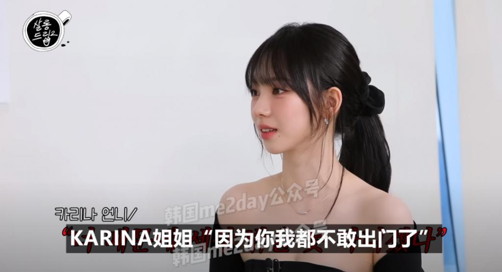 过去 KARINA 在节目中说过姐姐比自己长得更美,之后她姐姐表示自己对这句话非常有压力,因为这句话都不敢出门了。