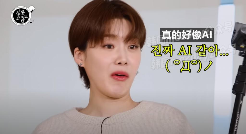 当张度练看着 KARINA 从远处走来时就表示:真的好像 AI。
