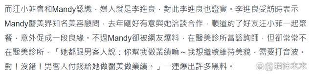 目前这些消息无从确认真假,但正是因为 Mandy 从事的医美工作,她才和汪小菲相识。据悉,汪小菲和 Mandy 是在去年九、十月份相识,当时胡瓜的前女婿李进良带着 Mandy 去 S HOTEL 吃饭,正好汪小菲也在其中,因此两人才从相识到相恋。从时间来看,两位可谓是火速发展。在得知汪小菲的结婚宣言后,媒人李进良更是称赞两人非常般配。