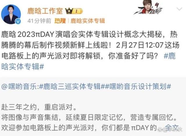 面对这波突然而至的争议,鹿晗方当然不会对号入座多加解释,其工作室反而借着这波热度发布鹿晗演唱会实体专辑的宣发流程,引起粉丝喊话工作室出来辟谣。