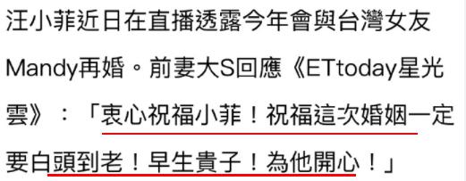 被记者问到前夫官宣二婚消息有什么想法,大 S 给他送了一连串祝福。