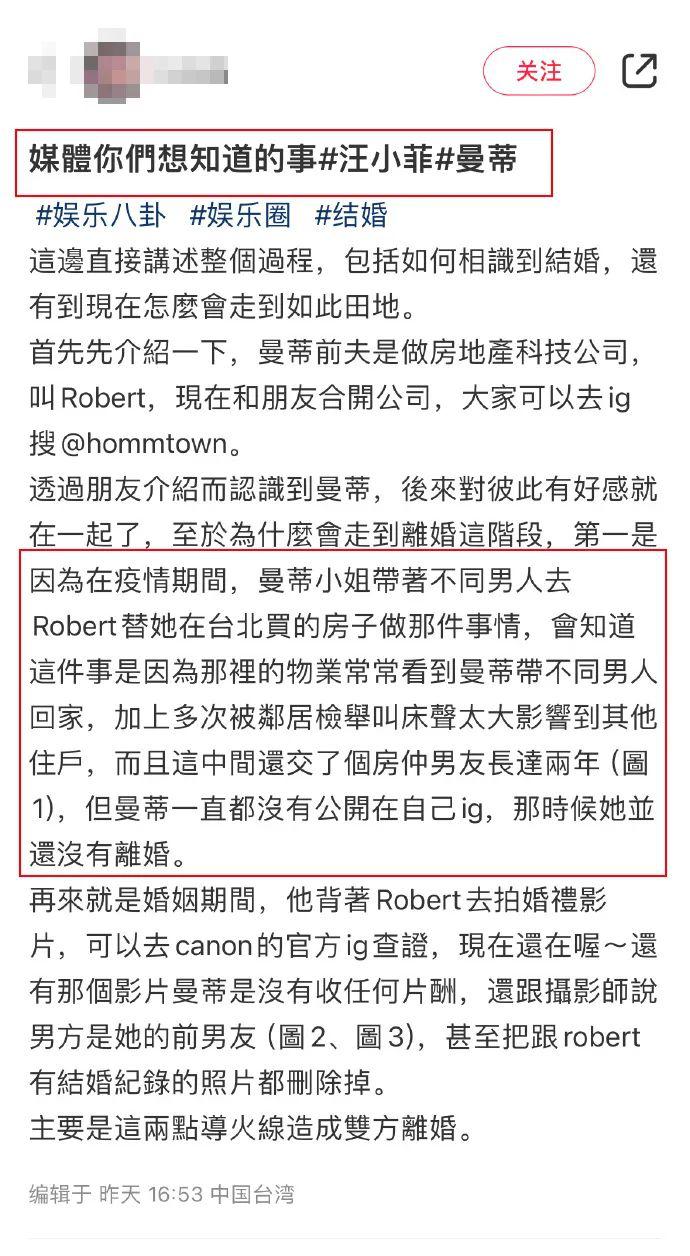 有网友发长贴爆料说新嫂子离婚的原因是婚内出轨被发现。↓