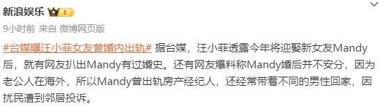 二婚对象不是对他有救命之恩的张颖颖,也不是一度互动热烈的富贵港女庄思敏,而是他新交往没多久的台湾女网红 Mandy。